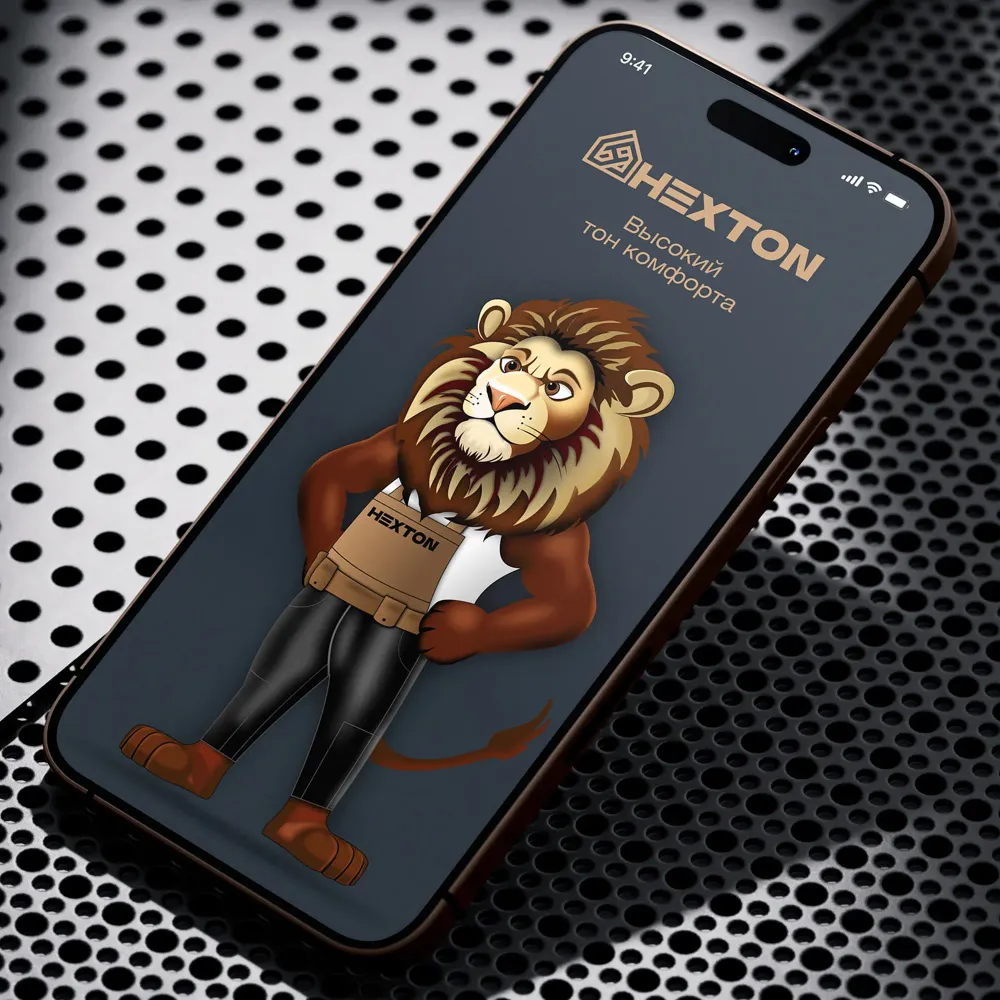 Фирменный персонаж - лев - был выбран как олицетворение силы, профессионализма и ответственности. Он получил имя Mr. Hexton, стал лицом бренда и, по совместительству, самим логотипом (специалист с головой льва).
