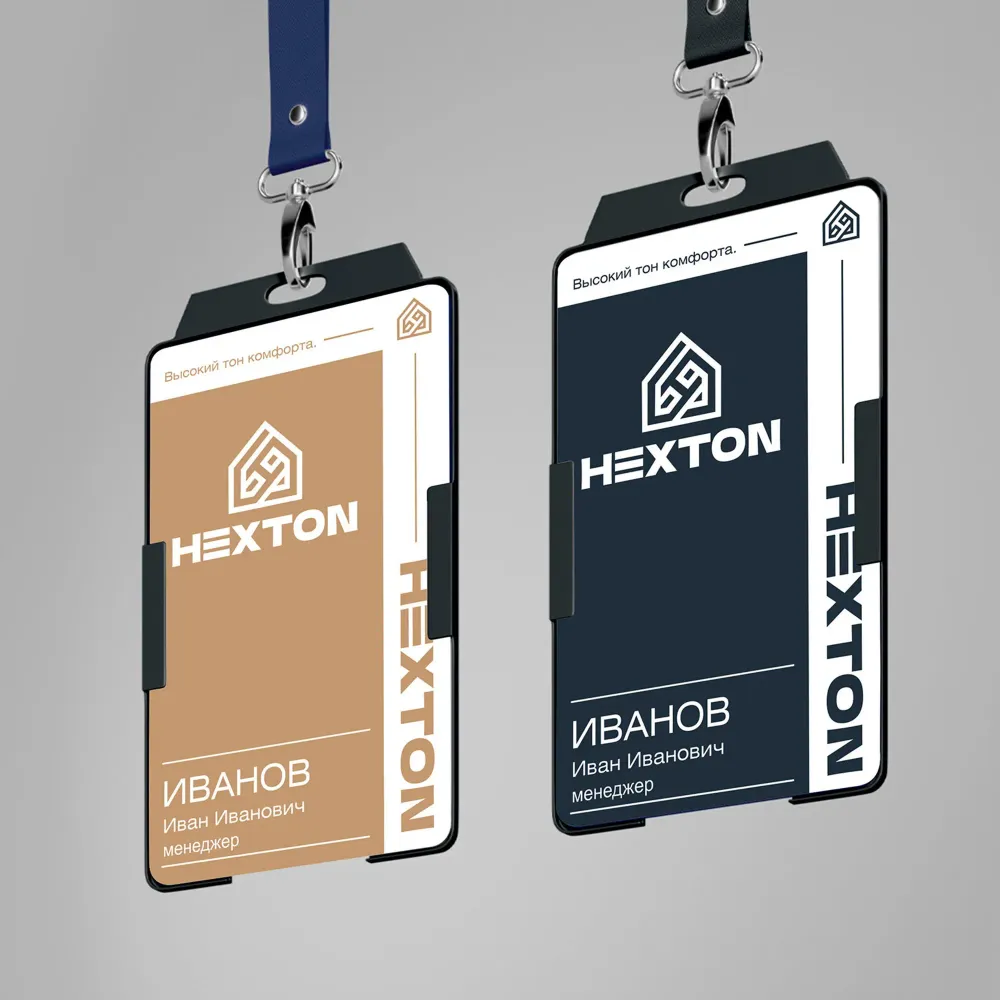 Следующим шагом стала разработка фирменного стиля для будущего бренда Hexton. Были предложены несколько вариантов названия, включая "Hexton", которое переводится англ. - high exterior - качественная отделка. Стильное, интересное по звучанию, запоминающееся название компании.