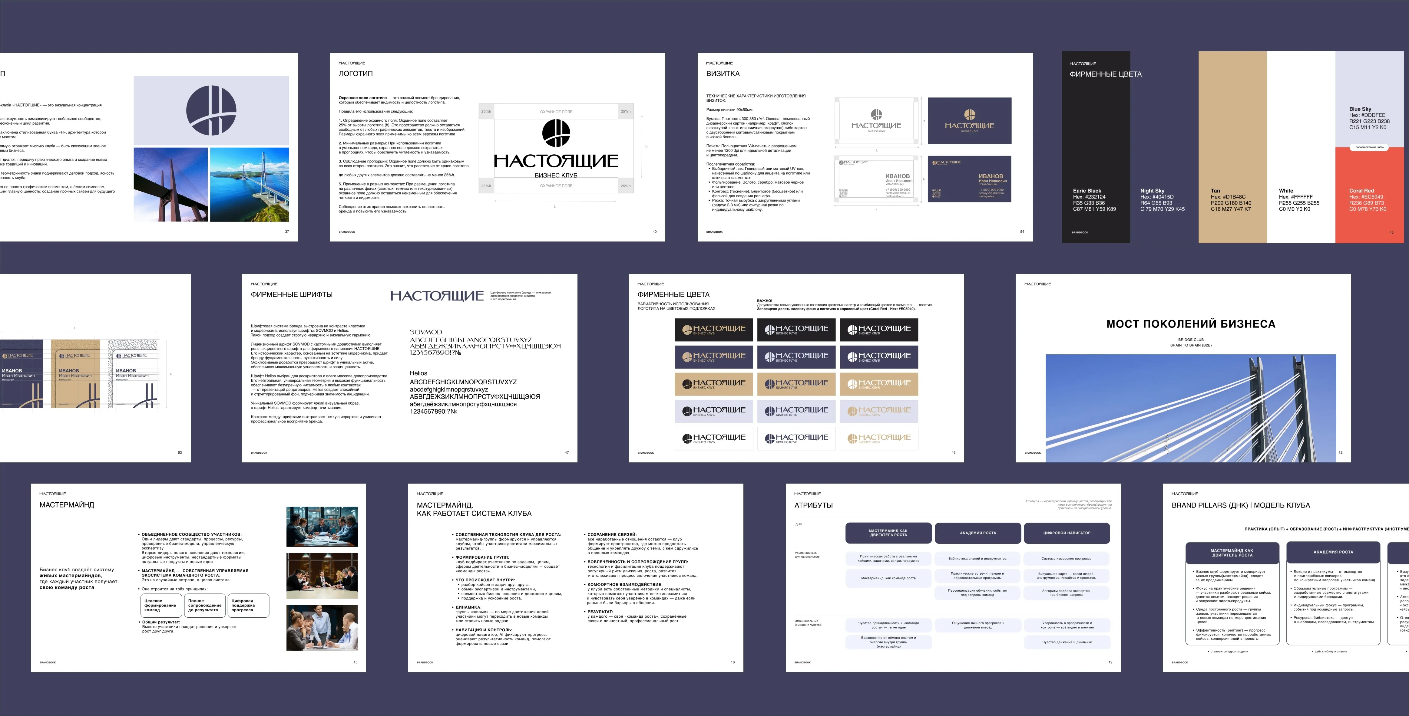 Финальный брендбук стал не просто инструкцией, а стратегическим инструментом для внутренней команды и партнёров. Он гарантирует, что на каждом этапе развития клуб «НАСТОЯЩИЕ» будет коммуницировать последовательно, усиливая узнаваемость, доверие и ценность в глазах предпринимателей — тех самых настоящих лидеров, для которых он и создан.