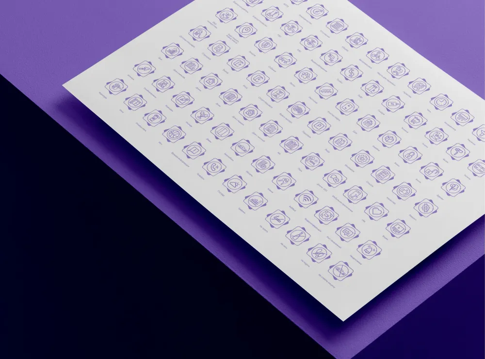 Отдельным направлением стала разработка фирменных иконок, охватывающих все сценарии взаимодействия с жителями: от навигации по ЖК до сервисных уведомлений. Иконки выполнены в едином стиле, используют только фирменные цвета и адаптированы для использования в цифровых и печатных носителях.