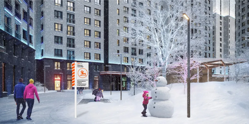 Для офлайн-среды мы создали систему навигации для трёх сегментов жилых комплексов — «Стандарт», «Оптима» и «Абсолют». Каждый сегмент включает навигационные таблички, правила, указатели для специальных зон, информационные и экстренные сообщения, а также малые архитектурные формы. Все элементы выполнены с учётом долговечности, удобства монтажа и соответствия фирменному стилю.