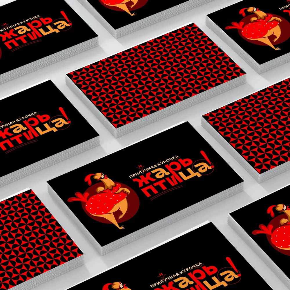 Цветовая гамма бренда была выбрана с учетом главной особенности меню – курицы, которую готовят с хрустящей золотистой корочкой. Основой стали оттенки красного и оранжевого, символизирующие энергию и тепло. Дополнительные белые элементы добавляют чистоты и свежести. Красный цвет привлекает внимание и передает ощущение уникальности, а оранжевый ассоциируется с радостью и энтузиазмом, что важно для заведения, стремящегося дарить клиентам положительные эмоции.